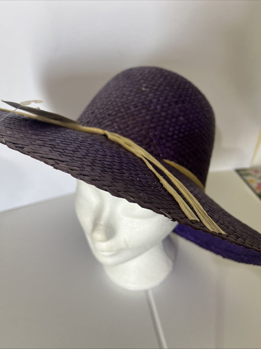 CAPPELLO PAGLIA VIOLA SOLE GIARDINAGGIO DONNA PASSEGGIO MARE TG UNICA