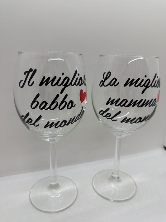 Calici in coppia “miglior babbo e mamma del mondo” in vetro