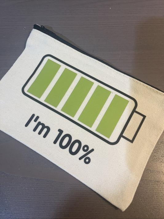 busta porta oggetti beauty pochette divertente I’m Sono 100% carica da borsa