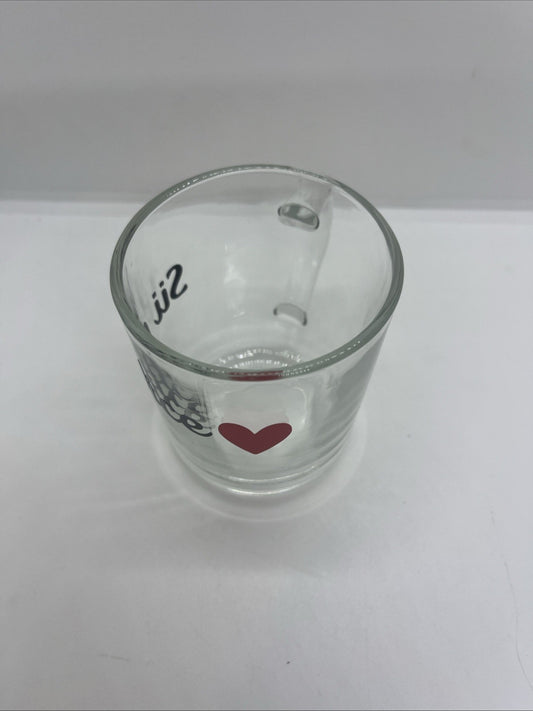 tazza colazione in vetro trasparente con scritta sii felice mug