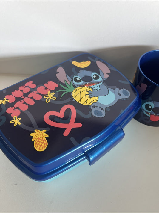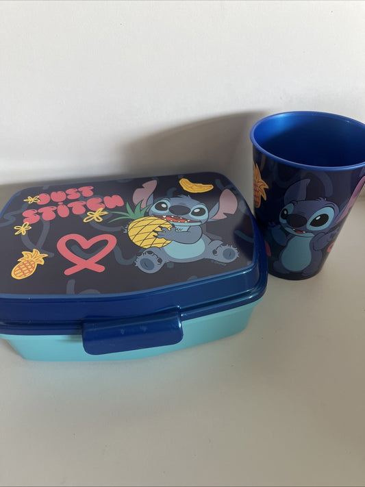 porta merenda e bicchiere (260 ml) in plastica per bambini stitch Adatti per la scuola, asilo, sport e tempo lbero Davvero utili!!!! Adatti al microonde ma da non mettere in lavastoviglie