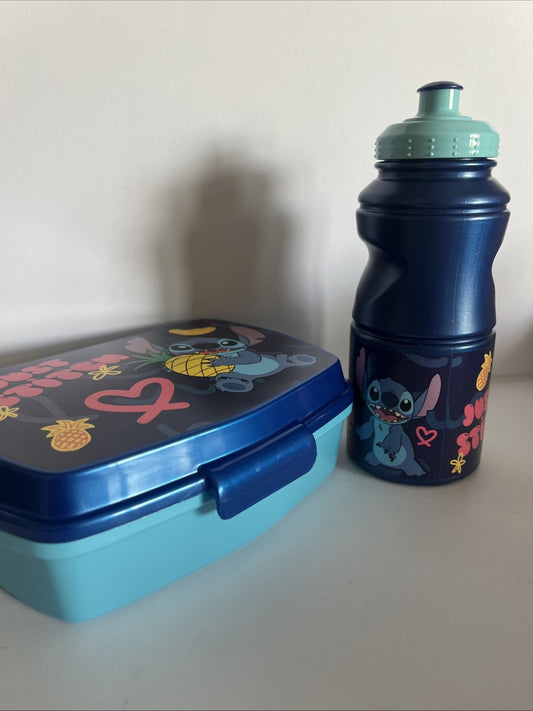 porta pranzo merenda e bicchiere in plastica per bambini stitch scuola asilo