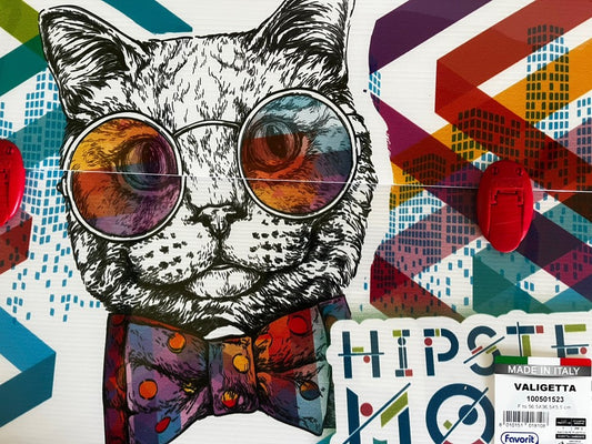 cartellina valigetta scuola disegno arte polionda 56,5x36,5x5,5 manico gatto red
