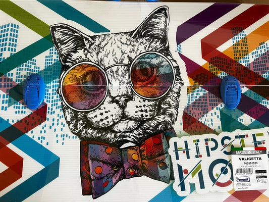 cartellina valigetta scuola disegno arte polionda 56,5x36,5x5,5 manico gatto Blu