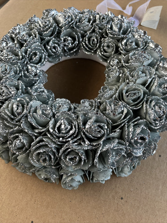 Ghirlanda di rose grigie con glitter argento da appendere 29 cm