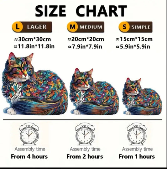 puzzle in legno forme irregolari rompicapo alta difficoltà gatto cat cats 20x20