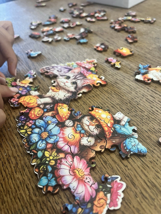 puzzle in legno forme irregolari rompicapo alta difficoltà gatto fungo 20x23