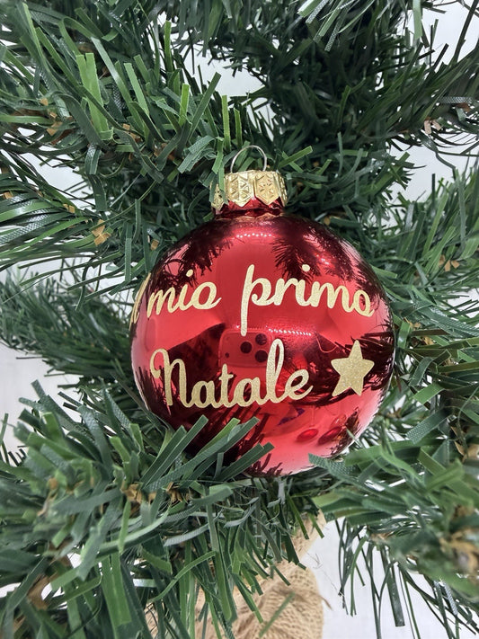 Pallina albero Natale decorazione vetro scritta il mio primo natale rosso e oro