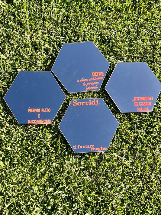 specchio decorativo da parete con frase "sorridi, ti fa stare meglio"