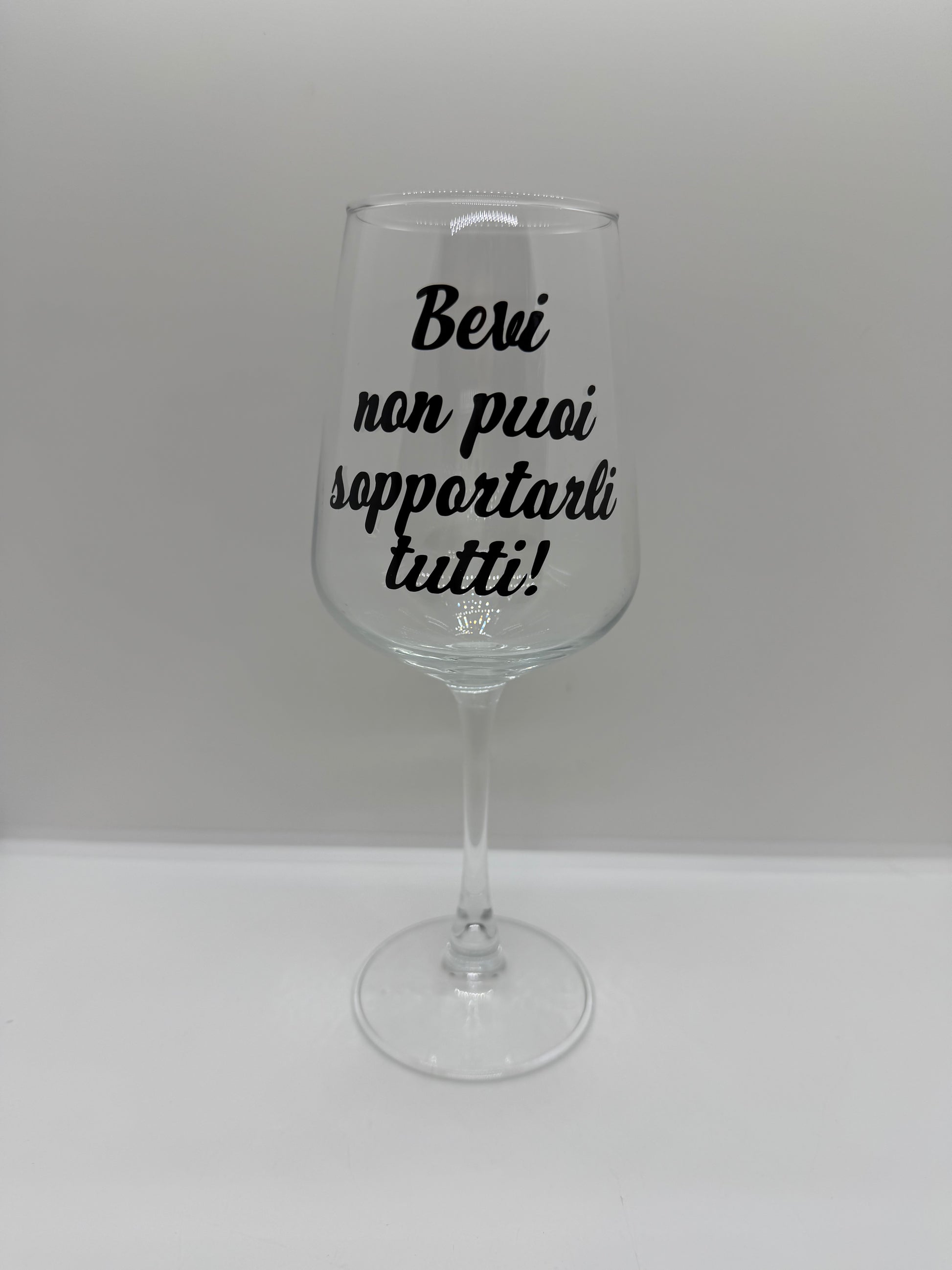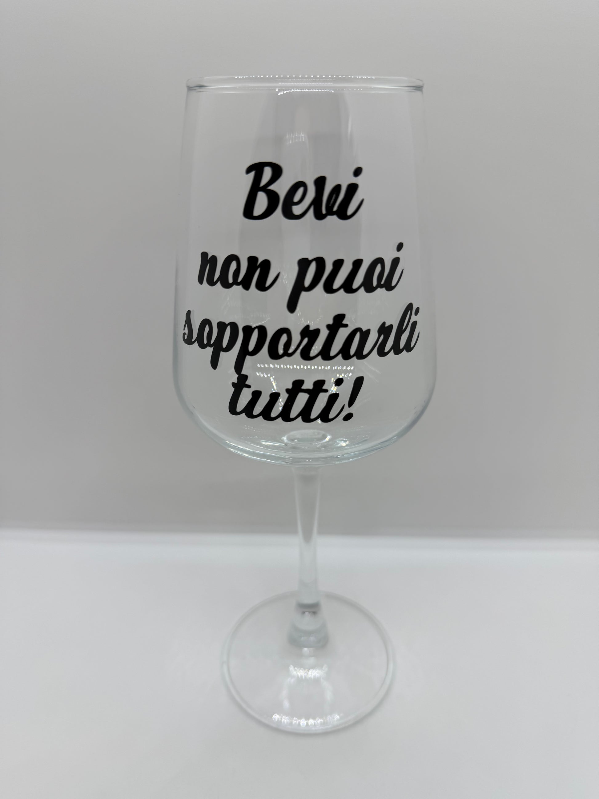 Calice in vetro 435 ml scritta divertente bevi non puoi sopportarli tutti