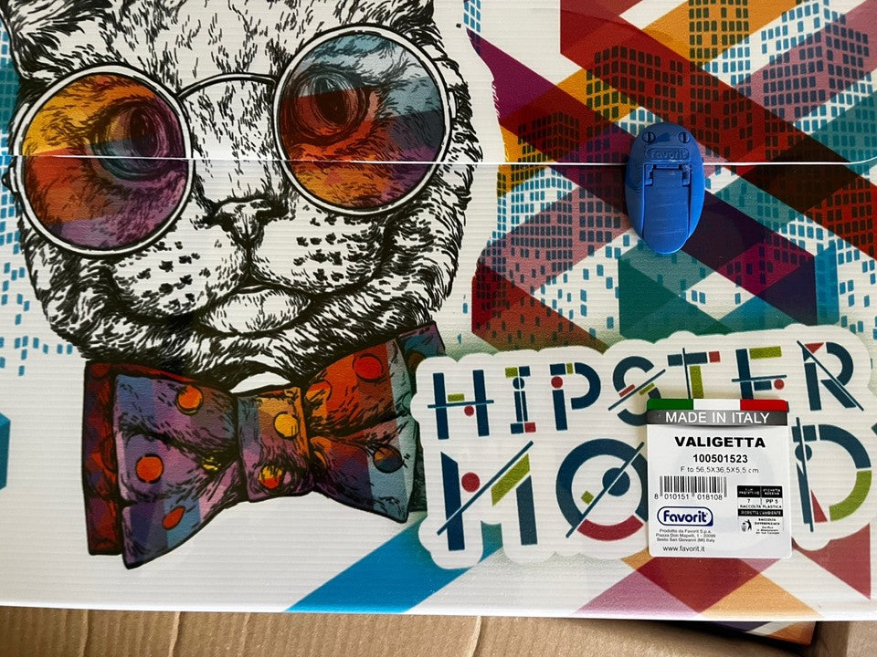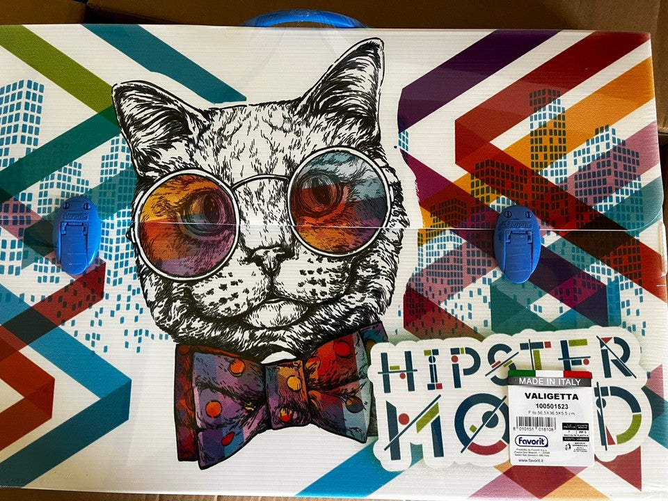 cartellina valigetta scuola disegno arte polionda 56,5x36,5x5,5 manico gatto Blu