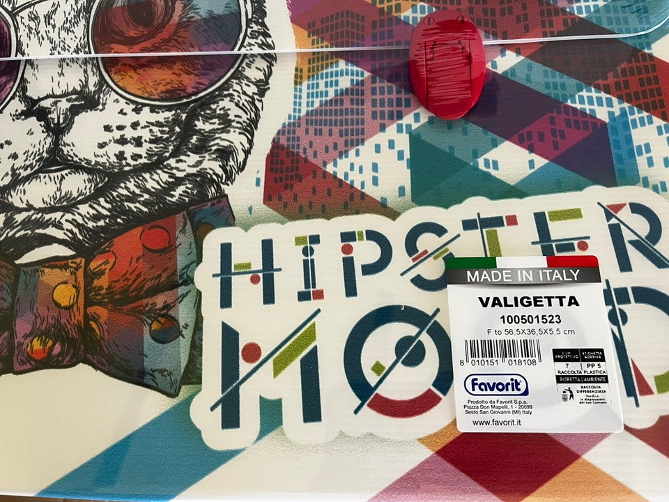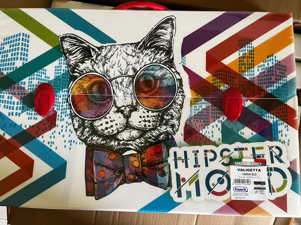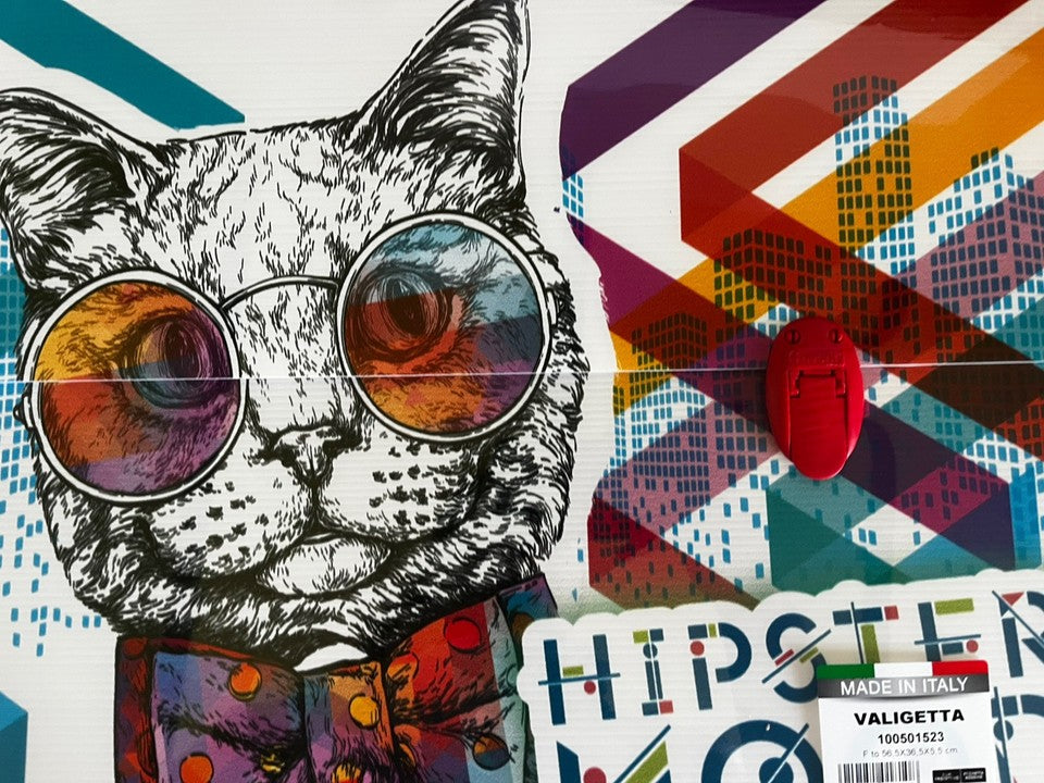 cartellina valigetta scuola disegno arte polionda 56,5x36,5x5,5 manico gatto red