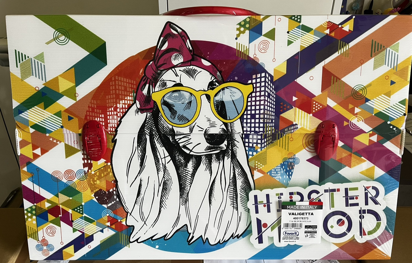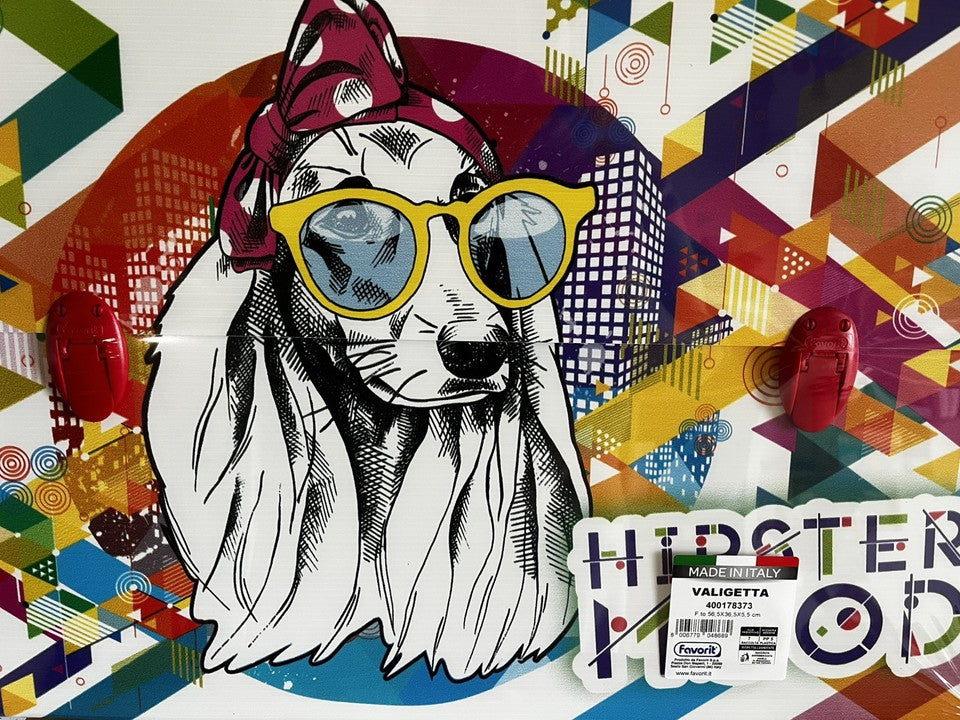 cartellina valigetta scuola disegno arte polionda 56,5x36,5x5,5 manico rosso dog